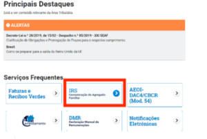 2. Selecione IRS comunicação de agregado familiar