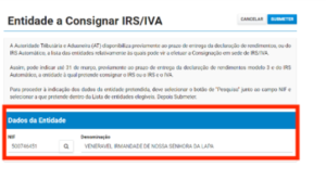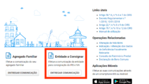 Indique, previamente ao prazo de entrega da declaração de IRS, a entidade à qual pretende consignar o seu IRS ou o IRS e o IVA.